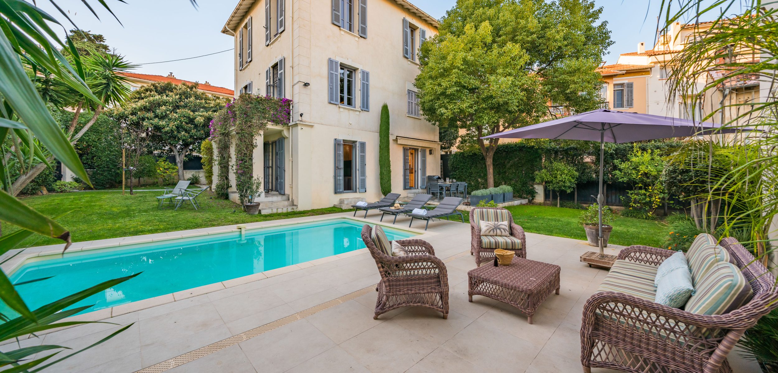 Contemporary house in the center of Cannes with a pool and relaxation area