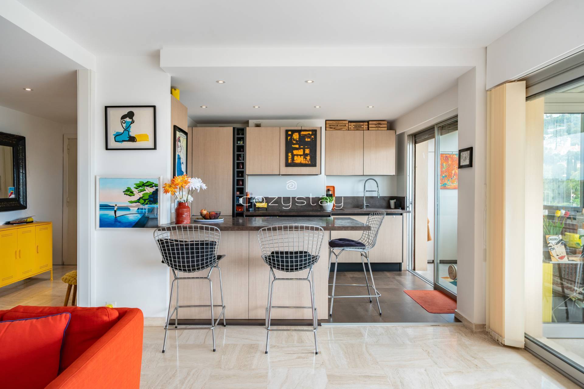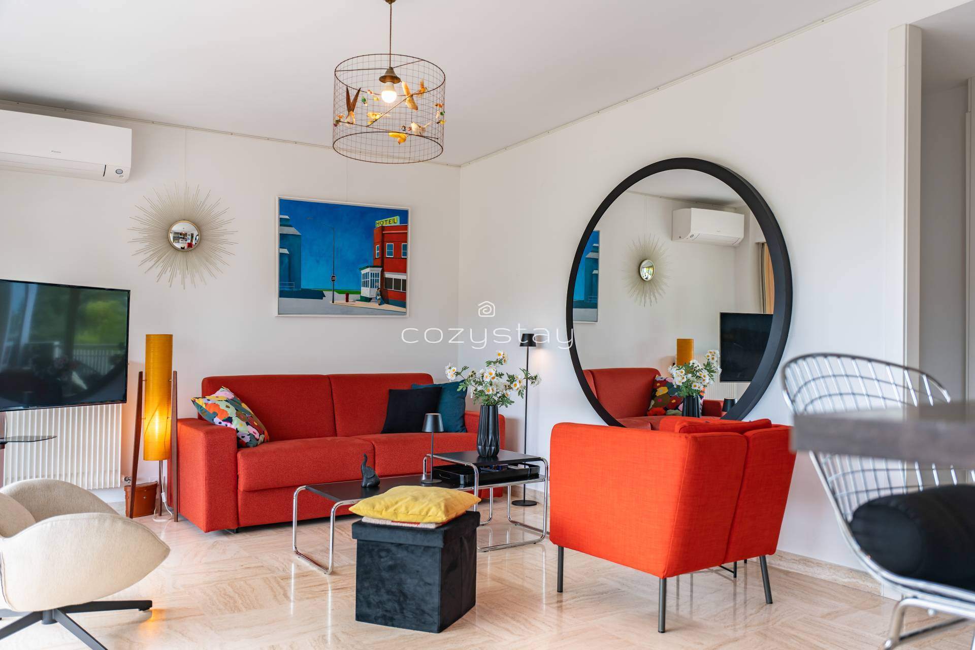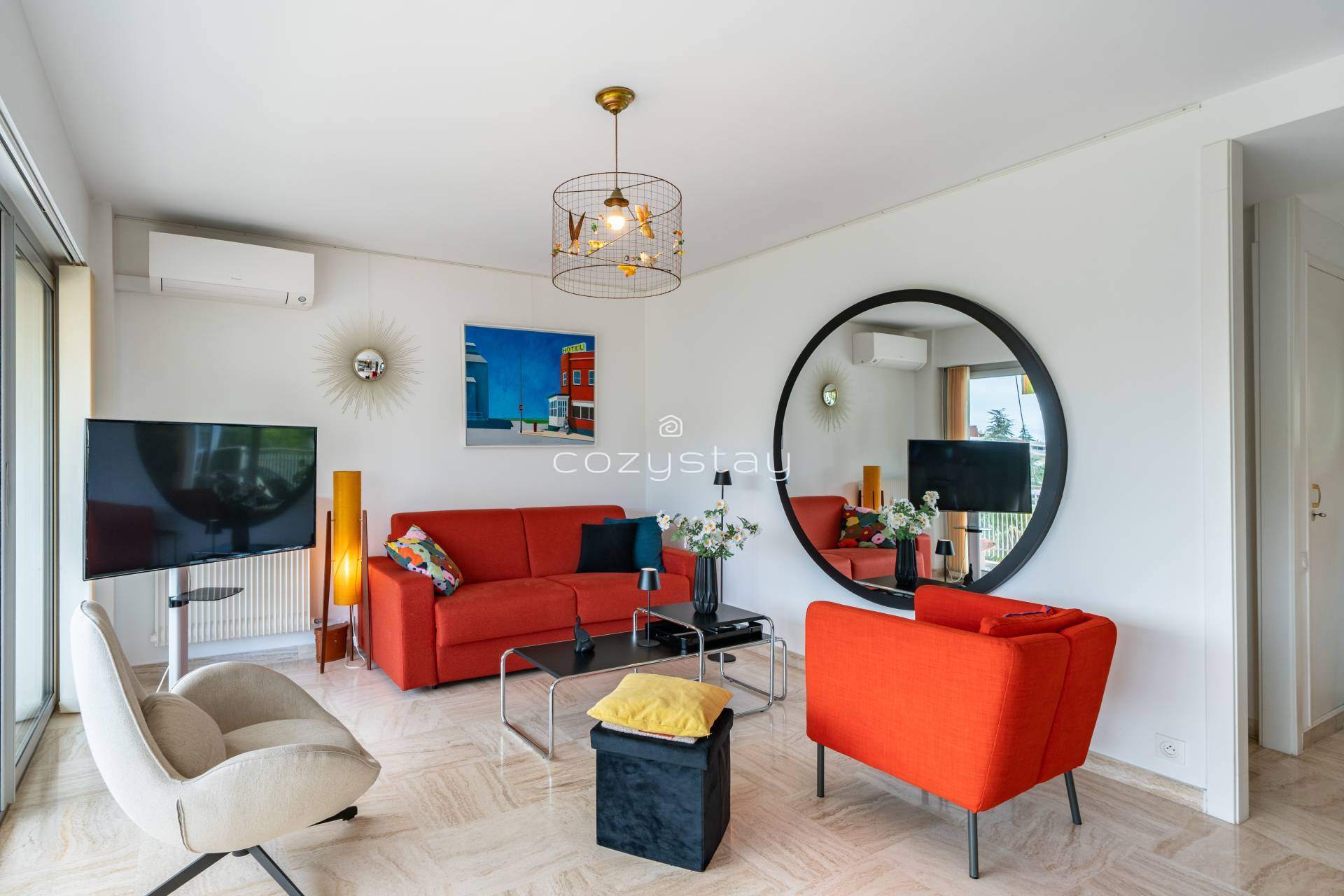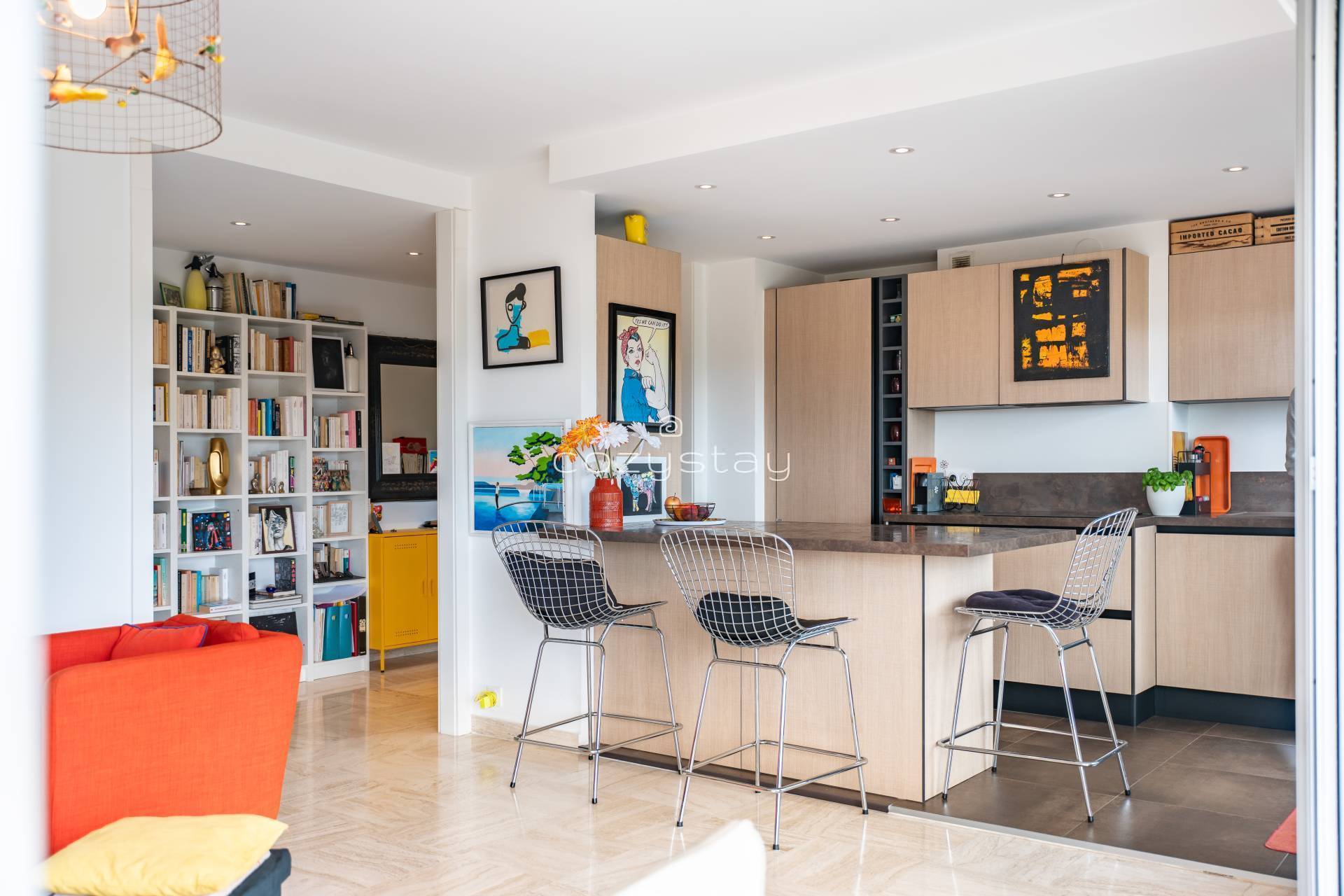 Ce charmant appartement offre un spacieux salon décoré avec goût, agrémenté d’un confortable canapé-lit, idéal pour accueillir famille ou amis. La cuisine américaine, entièrement équipée, allie fonctionnalité et modernité pour des moments conviviaux.