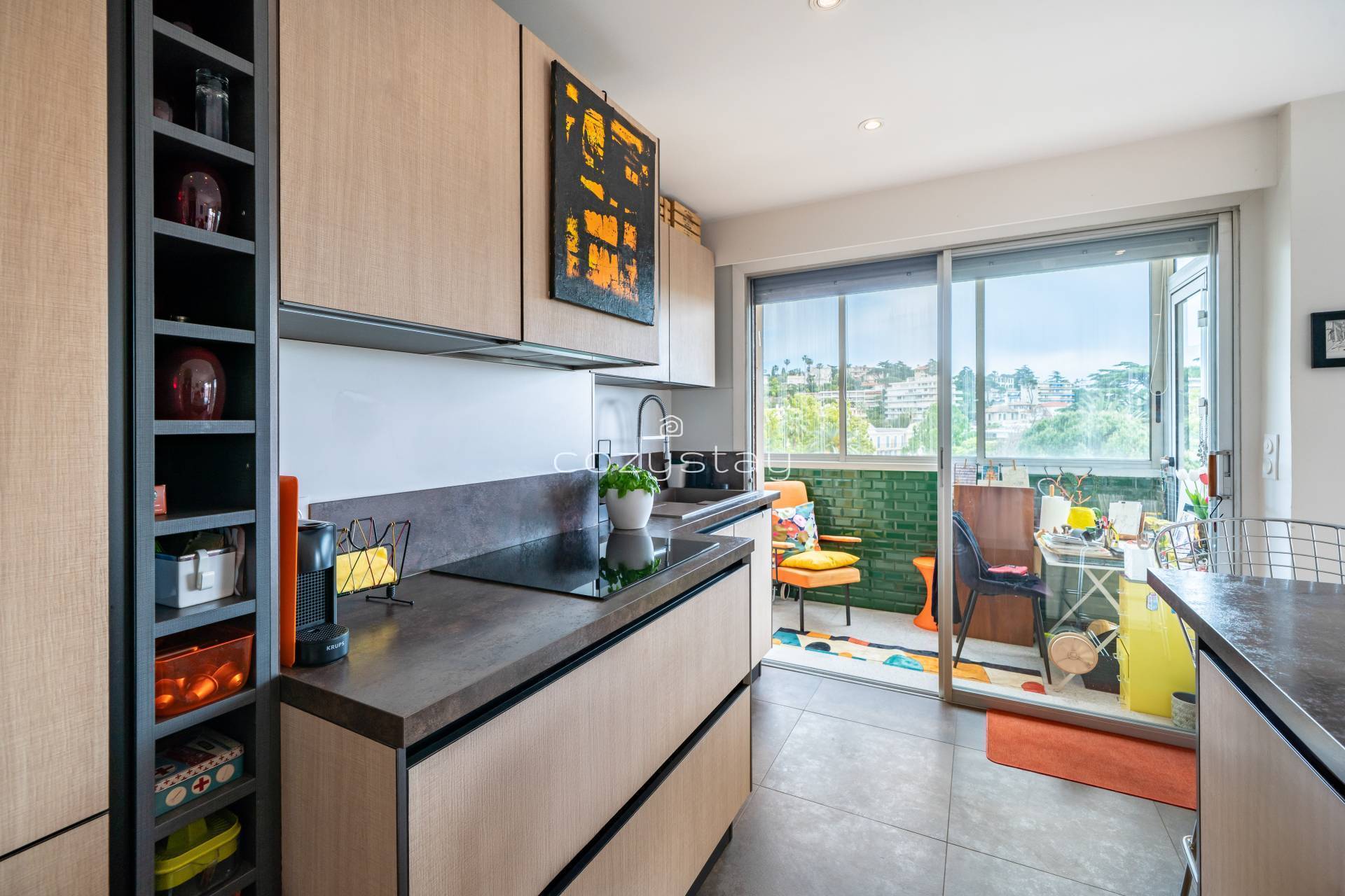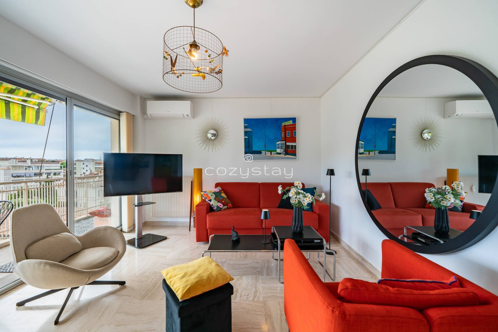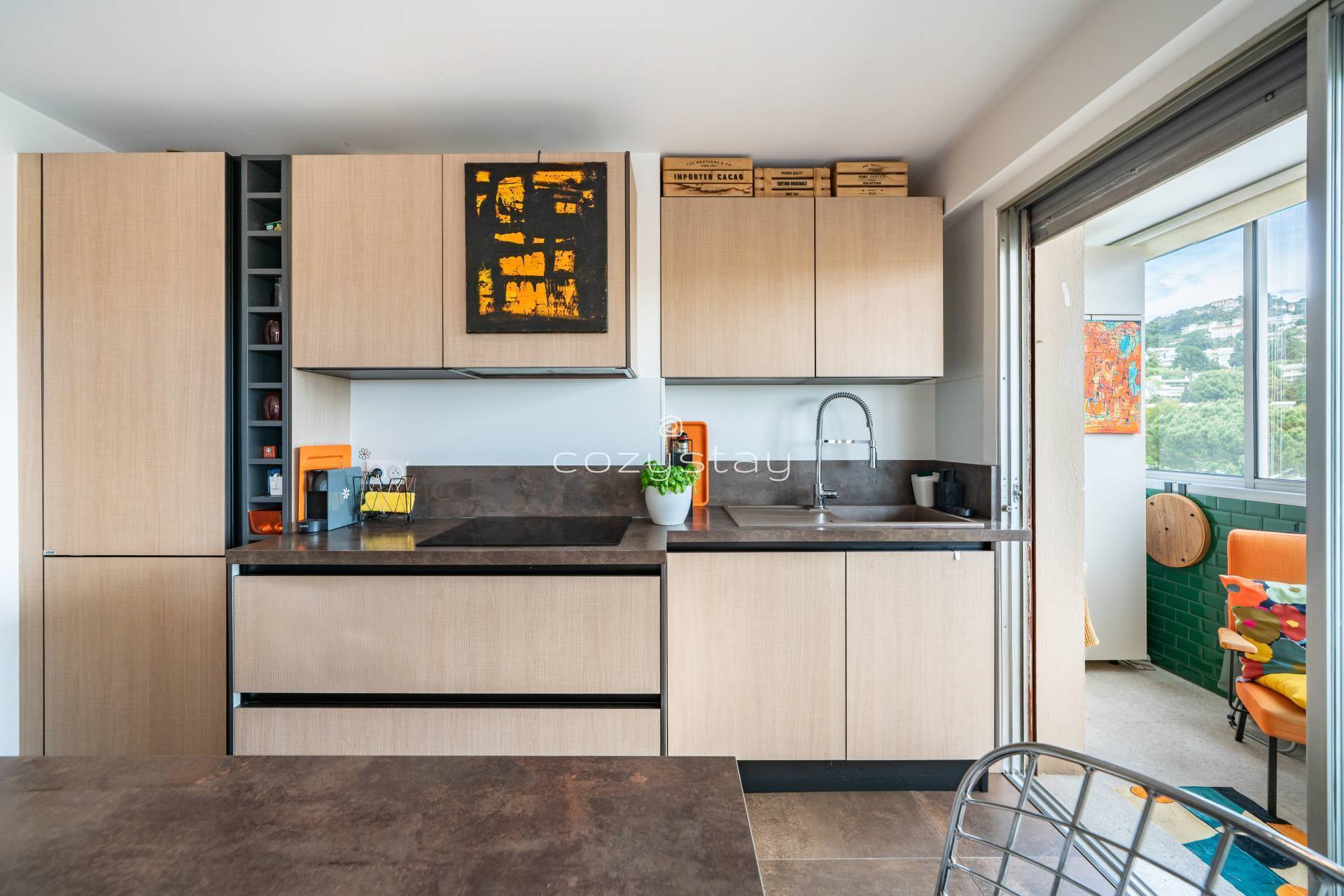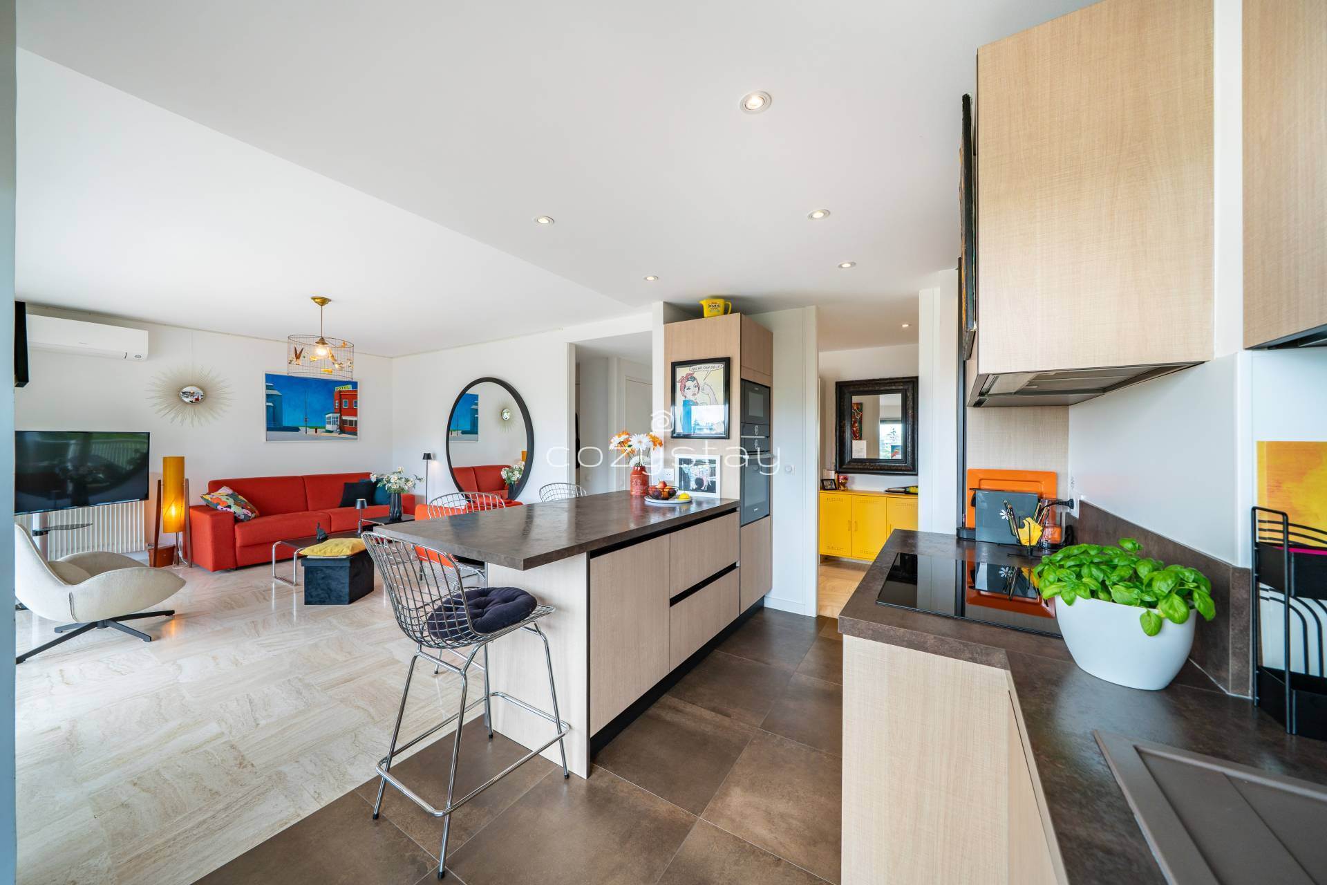 Ce charmant appartement offre un spacieux salon décoré avec goût, agrémenté d’un confortable canapé-lit, idéal pour accueillir famille ou amis. La cuisine américaine, entièrement équipée, allie fonctionnalité et modernité pour des moments conviviaux.