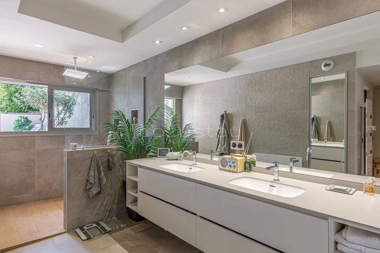 A terrace, a petanque field and a refreshing swimming pool, surrounded by a lush garden and trees, complete this property. The setting is ideal for relaxing and admiring the panoramic views of the surrounding hills and the charming village of Saint Paul de Vence.