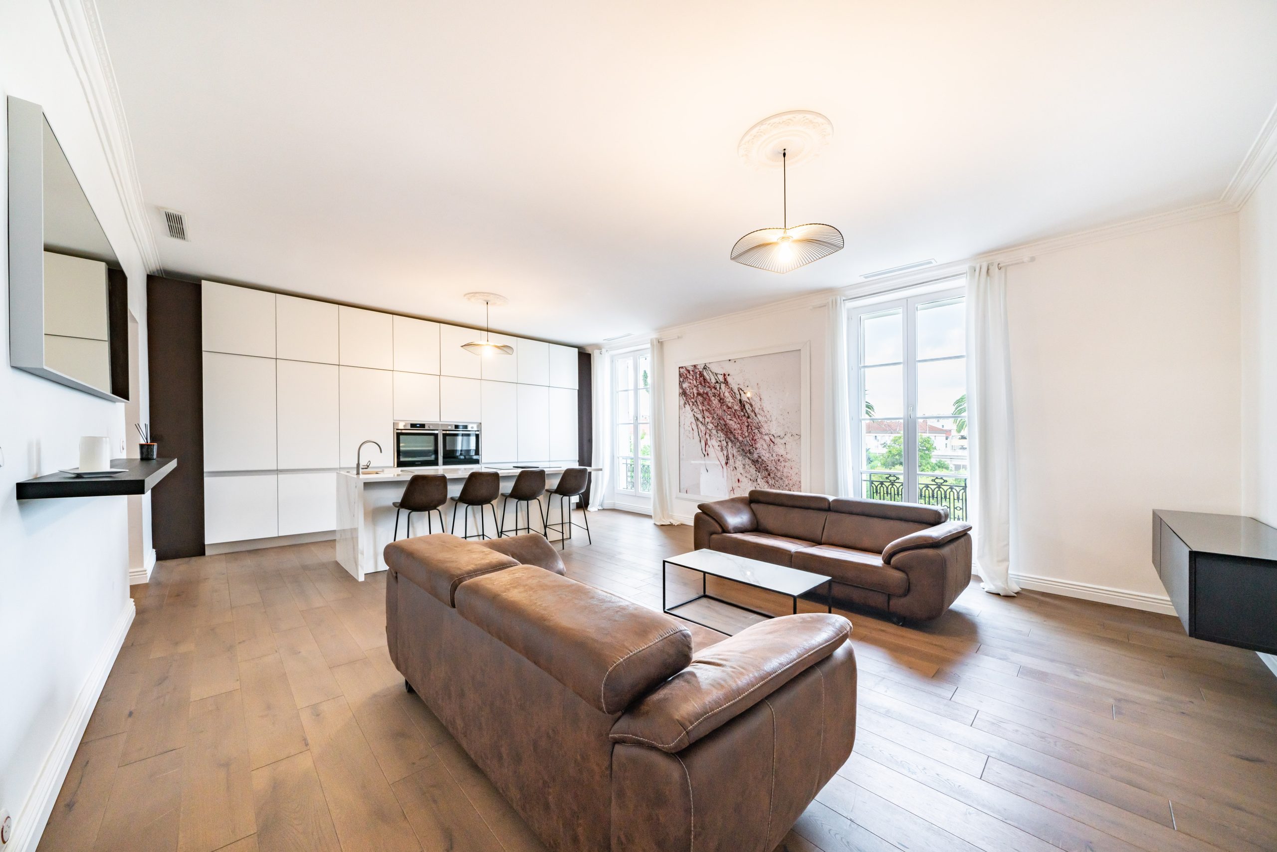 This magnificent 3 bedroom apartment has been completely renovated and is ideally located 10 minutes walk from the Palais des Festivals and the prestigious Boulevard de la Croisette.