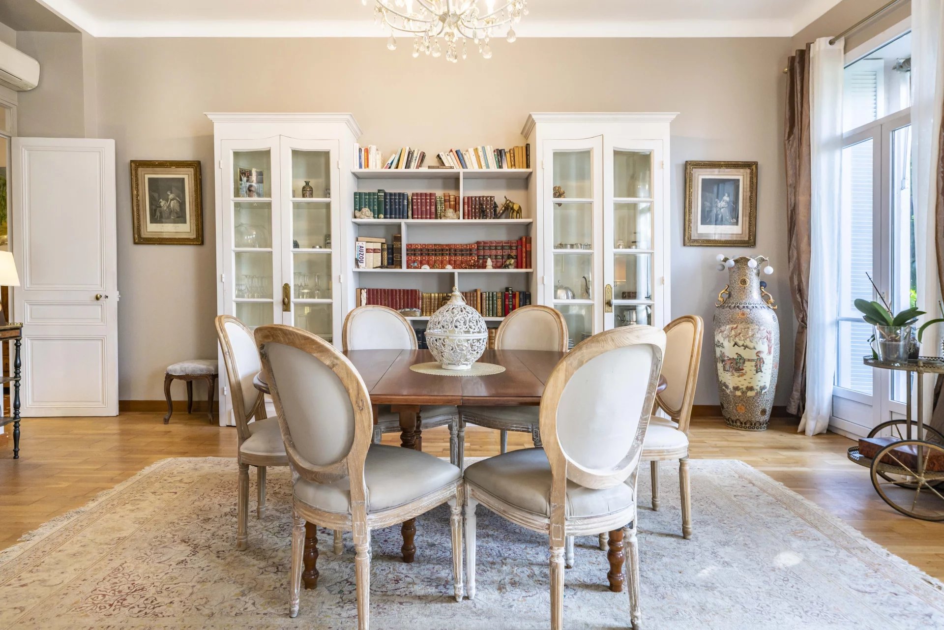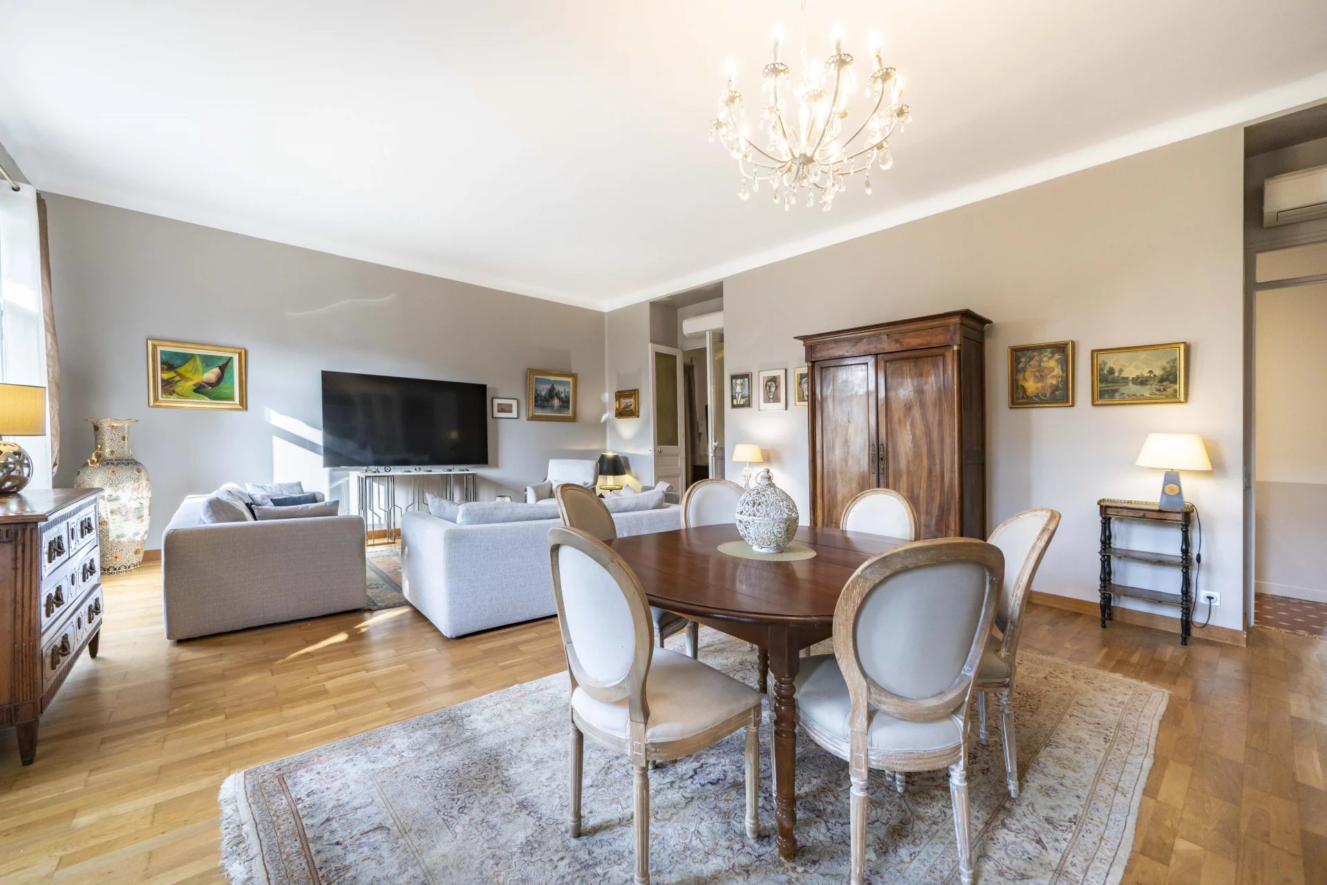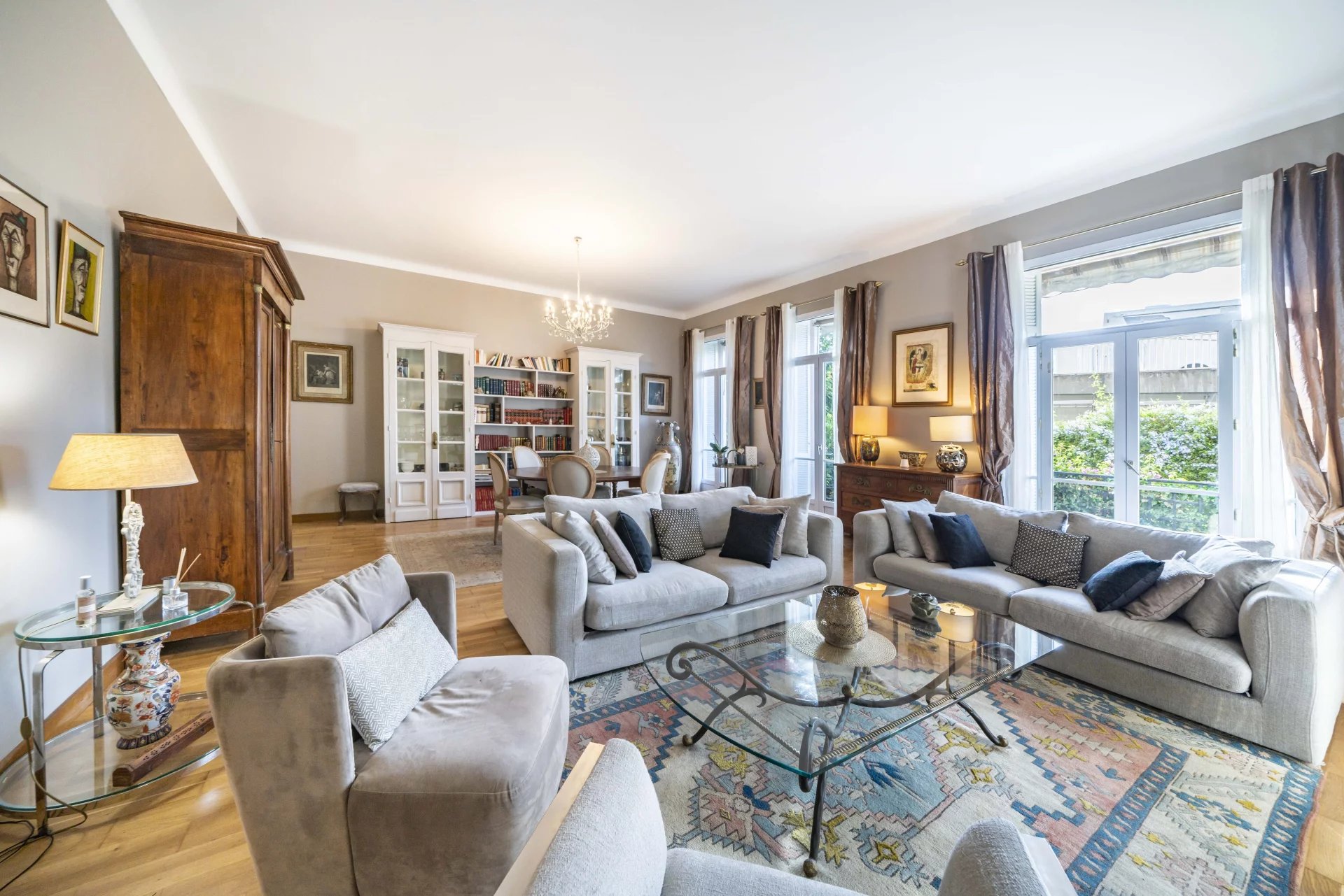 L’appartement traversant d’une surface Loi Carrez de 141 m², est composé comme suit : un grand hall, un vaste et lumineux séjour/salle à manger exposé sud, une cuisine indépendante équipée, une première chambre spacieuse de plus de 18 m², un dégagement dédié à une seconde chambre et une salle d’eau / WC, un autre espace nuit comprenant une grande chambre en suite avec salle de douche, un WC invités, une buanderie. L’appartement est agrémenté d’un dressing d’environ 20 m² et d’une cave. L’ensemble de l’appartement est climatisé.