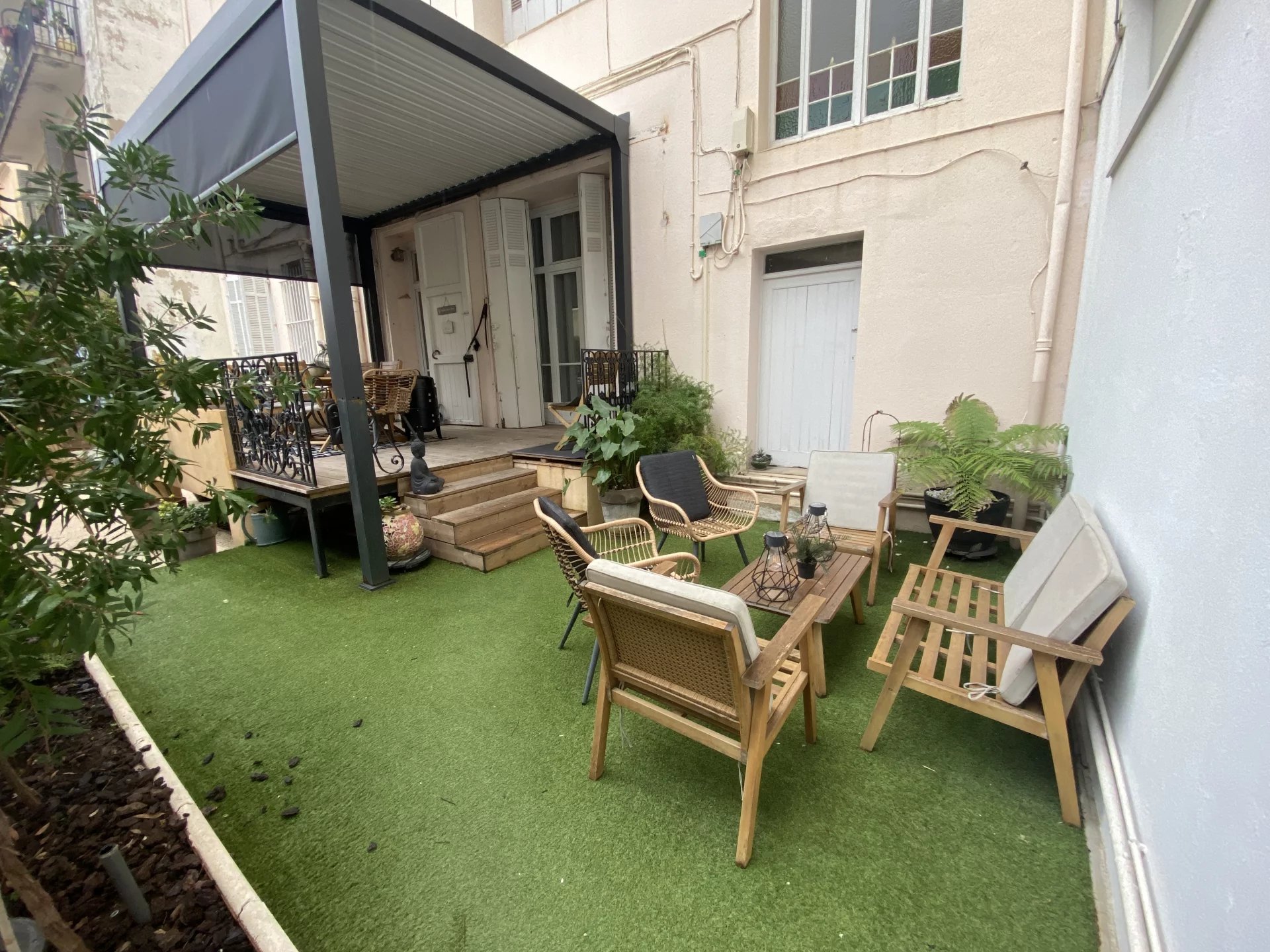 RARE A LA VENTE – Découvrez cet appartement situé au cœur de Cannes, conjuguant l’élégance d’un bourgeois tout en offrant les privilèges particulièrement recherchés d’une maison : garage fermé de plain-pied avec accès direct à l’appartement, ainsi que plusieurs espaces extérieurs dont un jardin privatif de 70m² agrémenté d’une terrasse et d’une pergola.