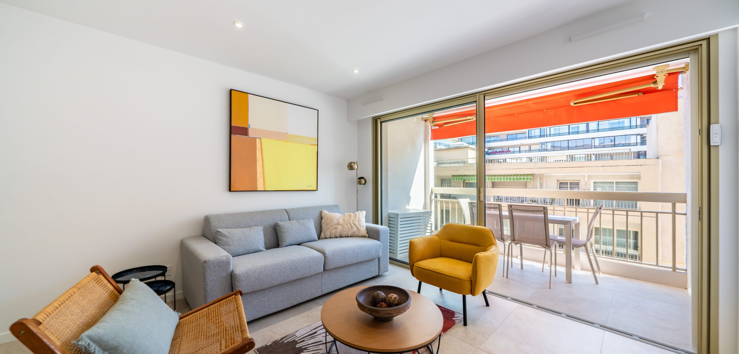 Situé en plein cœur de Cannes, à deux pas de la Croisette, des plages, du Palais des Festivals et de toutes les commodités, cet appartement de trois pièces entièrement rénové vous accueille dans un cadre à la fois moderne, chaleureux et raffiné.