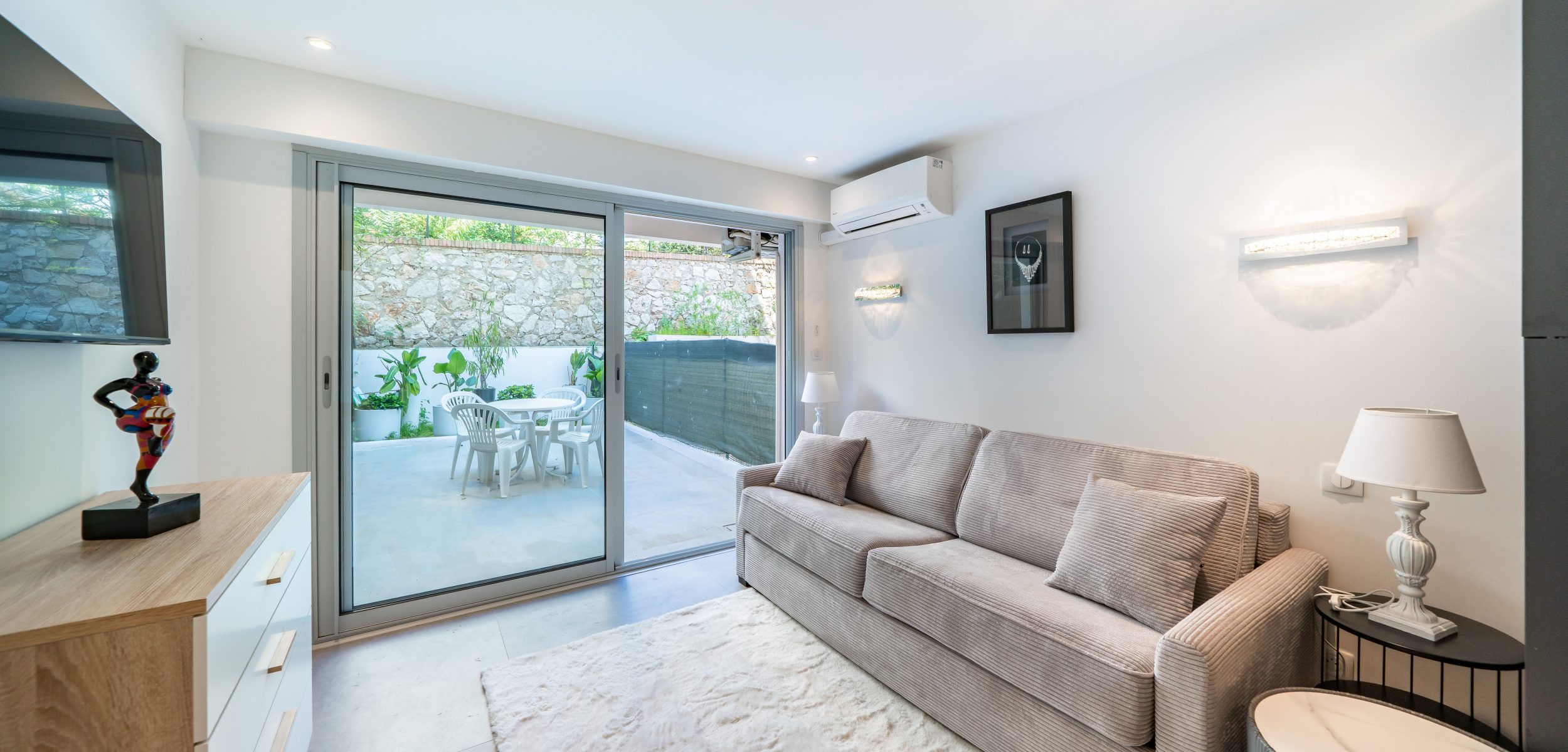 Dès votre arrivée, vous serez accueilli dans un espace ouvrant sur une grande terrasse privée, parfaite pour savourer un café ou un dîner en toute intimité après une journée sur la Croisette.