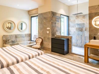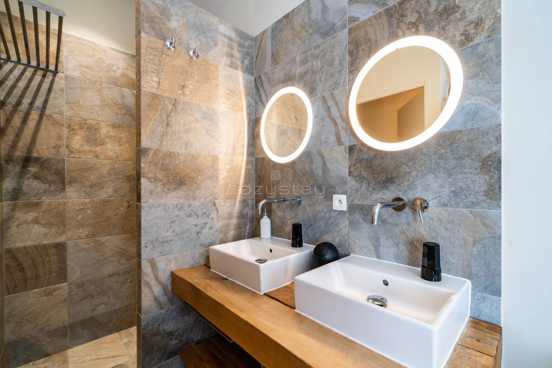 Le loft comporte trois chambres en suite, chacune avec sa propre salle d’eau attenante. Les chambres sont spacieuses et décorées avec goût, offrant un havre de paix pour se détendre. En plus de ces chambres, il y a une chambre en mezzanine, parfaite pour accueillir des invités ou servir de bureau.