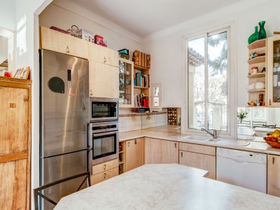 Cette belle maison de ville est distribuée sur deux étages. Elle se situe dans le quartier du Palm Beach à Cannes.