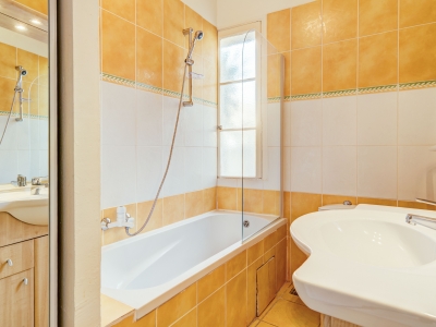 L’étage quant à lui est composé de trois chambres doubles, d’une salle de bain avec wc, d’un wc indépendant et d’une salle de douche.