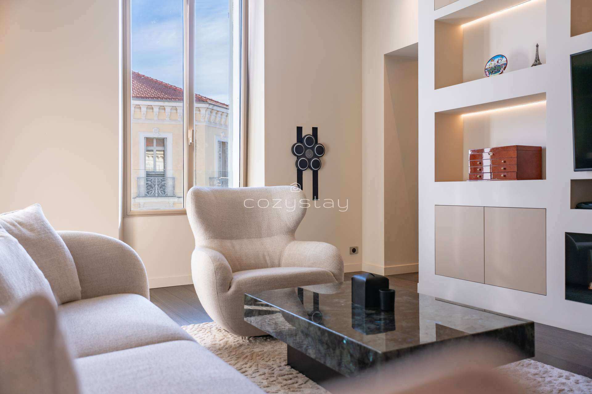 *Accès facile : 1 min de la rue d’Antibes, 10 min à pied de la Croisette et du Palais des Festivals, proche gare