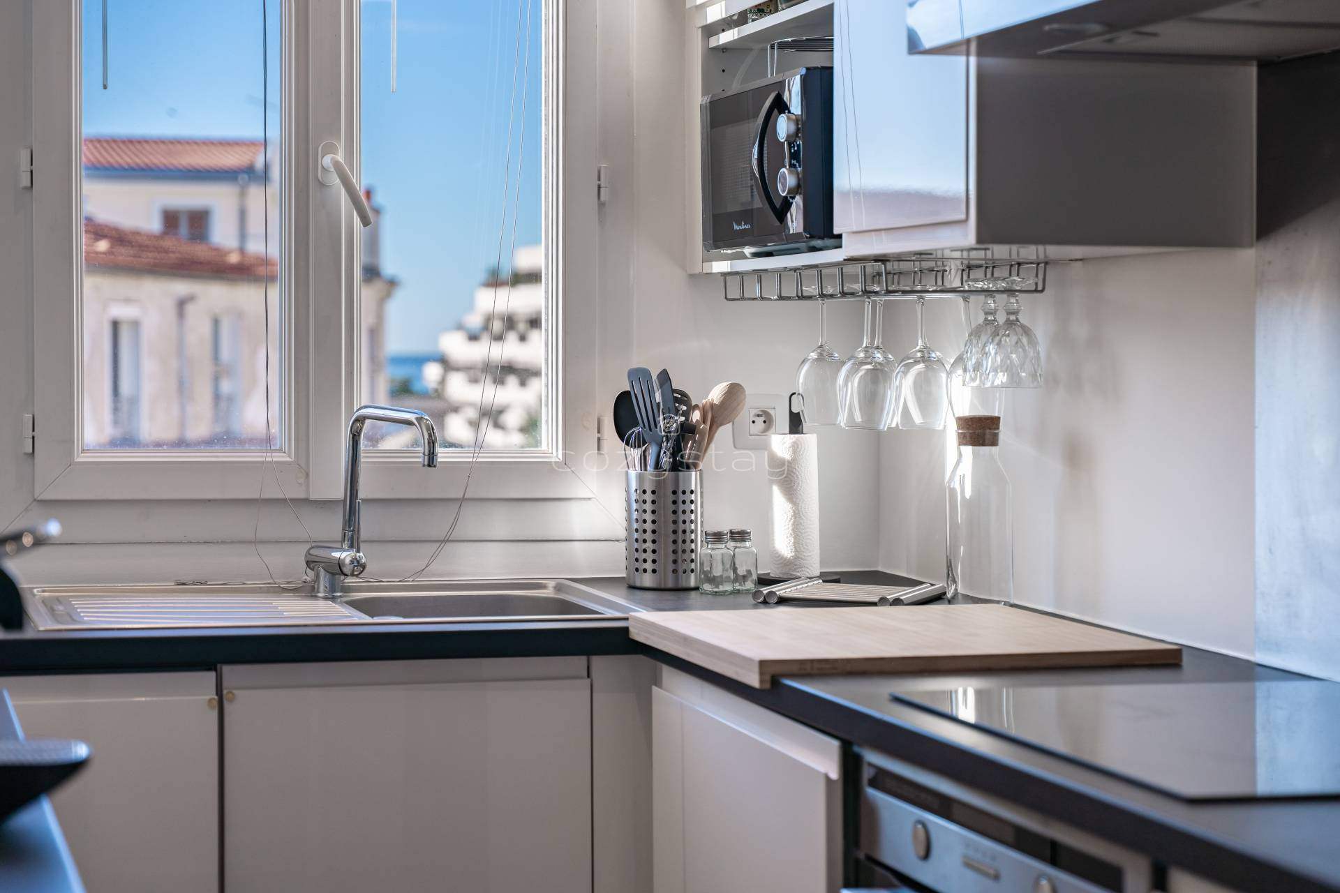 L’appartement se compose d’un séjour lumineux, d’une cuisine équipée, d’une chambre calme, et d’une salle de bains fonctionnelle. Que ce soit pour profiter des plages, assister à un congrès au Palais des Festivals ou simplement découvrir la ville, cet appartement est le pied-à-terre parfait.